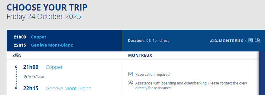Alterations for Fridays 17th October to 14th November PS Montreux operates sailings 738-740-390 vice PS Savoie |