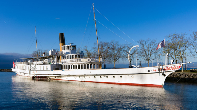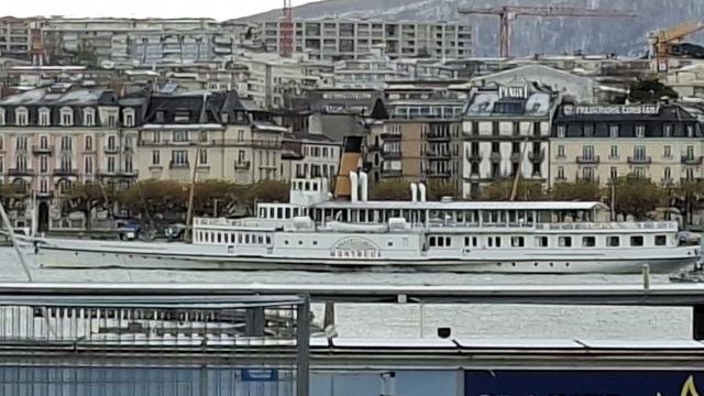 PS Montreux (Lake Geneva) ![]() photo: Robert Monch The paddle steamer returns to Geneva at the end of her first short afternooon sailing 738 "round the Petit Lac" (Little lake) | ||