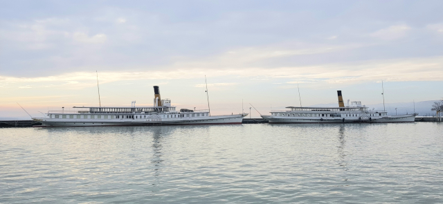 PSs La Suisse and Simplon (Lake Geneva) ![]() photo: Alain Vuistiner The two largest paddle steamers remain at the outer wall at Ouchy dock awaiting repairs Sadly neither of them will see service before 2027 at the VERY earliest leaving the smaller paddle steamers to again cope with the summer crowds as best they can | ||