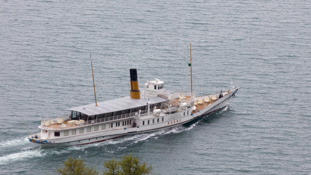 PS Rhône (Lake Geneva) ![]() photo: Alain Vuistiner The paddle steamer undeetakes a further "test" sailing and is seen near Montreux | ||