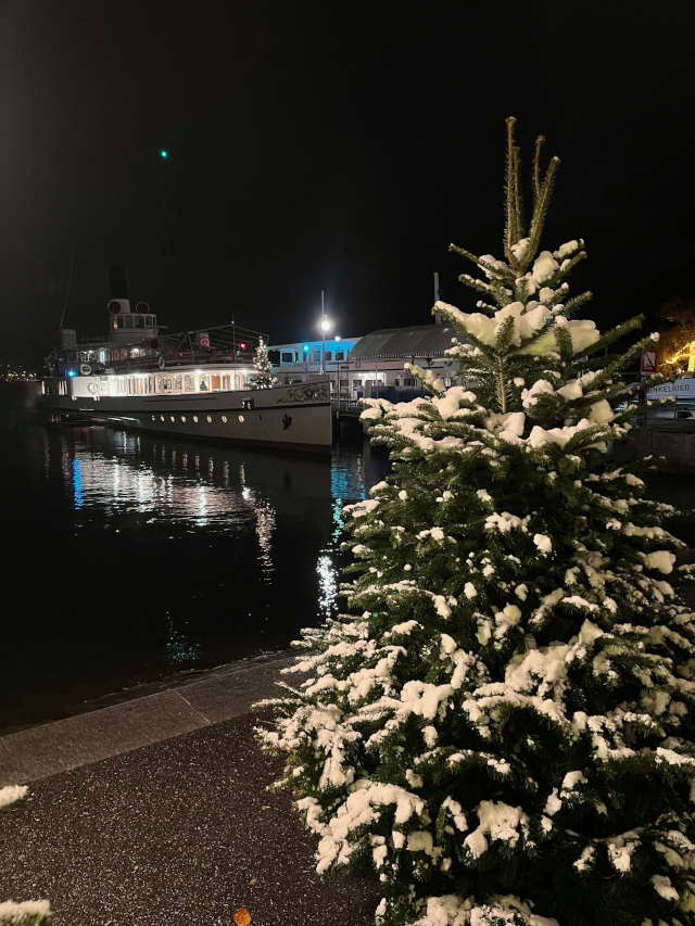 PS Unterwalden (Lake Luzern) ![]() photos: Daniel Eichenberger The paddle steamer stands at Luzern prior to operating her first special evening Advent Cruise sailing 1107 of 2025 from Luzern | ||