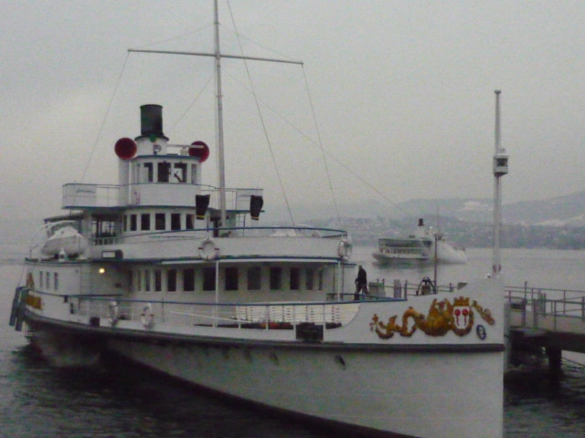 ![]() photo: Daniel Eichenberger PS Stadt Zürich arrives at the Bürkliplatz pier to start the 2008 season on Good Friday |
